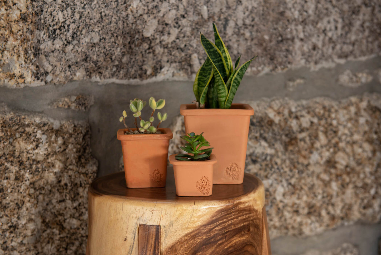 Os vasos de barro são fabricados em Portugal e têm um design minimalista que se encaixa perfeitamente em qualquer contexto.